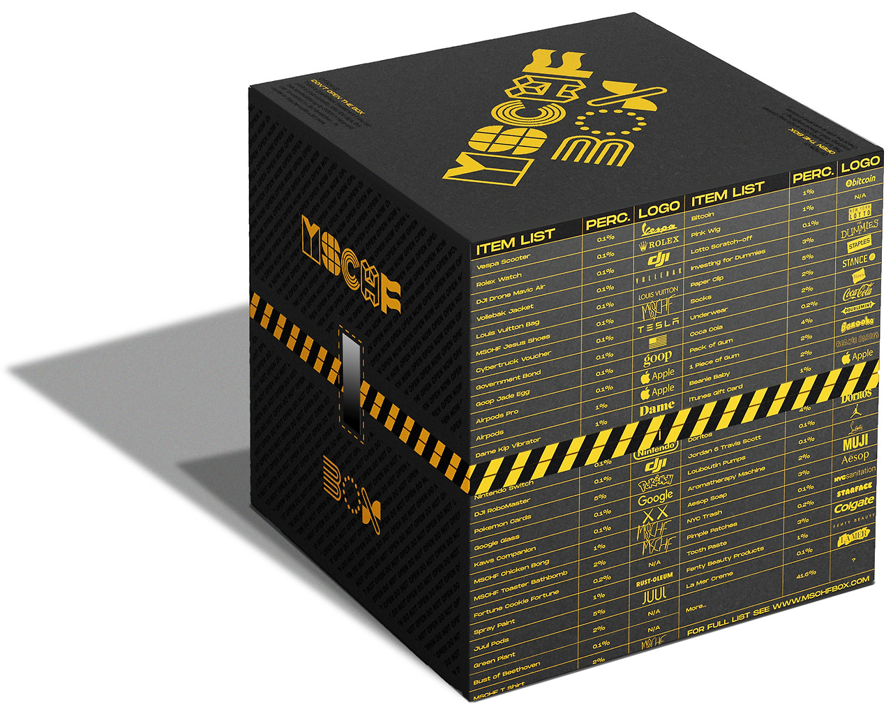 "MSCHF Box"는 MSCHF가 2020년 2월에 선보인 미스터리 박스 프로젝트로, 구매자에게 두 가지 선택지를 제공합니다: